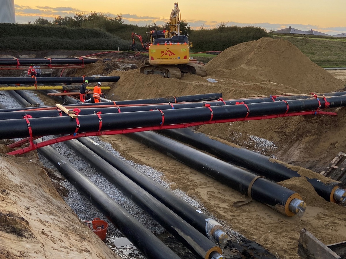 Næste skridt i at forbinde det nye flisværk med det øvrige produktionsanlæg og det eksisterende ledningsnet, bliver at få ført rørene helt ind på varmeværket på Isagervej. Denne del af opgaven er imidlertid på egen grund, og kan derfor udføres løbende uden at forstyrre trafikken eller andre.
